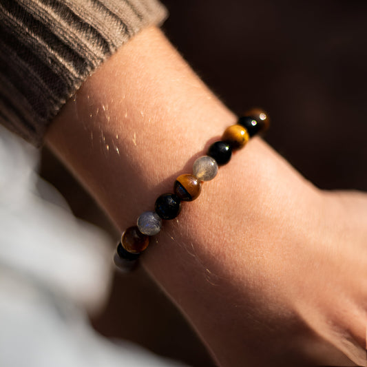 Energiearmband “Ultimativer Schutz“ aus Turmalin, Tigerauge und Labradorit