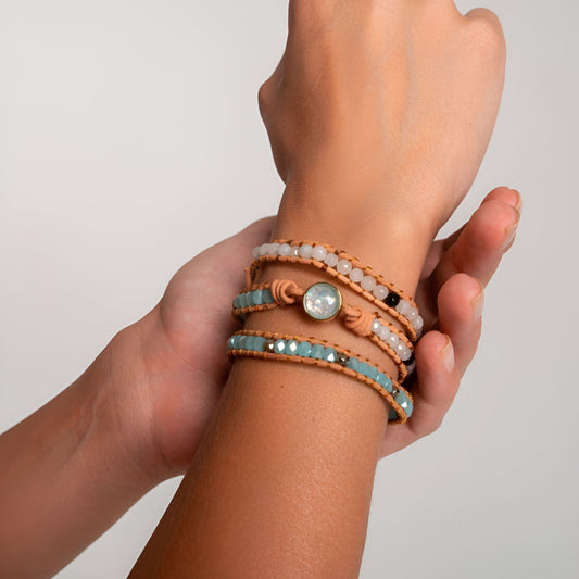 Energiearmband-Set “Ozeanisches Wohlbefinden“ – Türkis, Howlith und Aquamarin