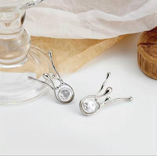 Abstrakte Ohrringe mit Kunstperlen